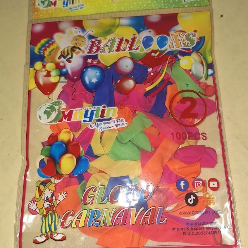 Paquete de 100 globos resistentes, perfectos para jugar carnavales. Marca Maylin, calidad nacional garantizada y de confianza.