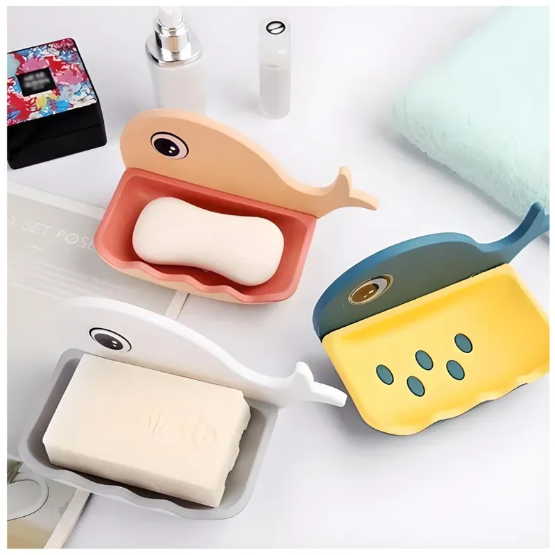 Jabonera en forma de ballena, diseño de drenaje doble, resistente y antideslizante. Hecha de ABS, ligera (60g), ideal para mantener tu jabón seco y duradero.